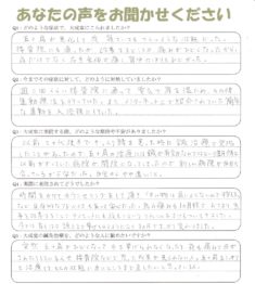 時間をかけてカウンセリングをして頂き、「甘い物は肩によくないので控える」など、具体的なアドバイスもあって安心だった。