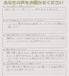さっそくネットで検索し、その中からここならば必ず良くなるとの思いで、大成堂に行くことを決めました。