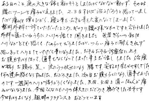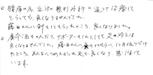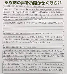 今まで、いくつか治療を試してきましたが、その場しのぎの痛みとりだったので、少しでも緩和できたらと思いました。