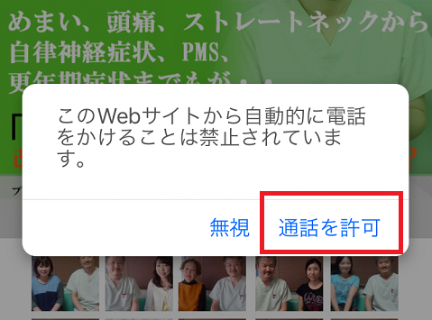 iphoneから1つのページで電話番号リンクを3回以上クリックすると「このWebサイトから自動的に電話をかけることは禁止されています。」というダイアログが出るようですが、システム上問題はございませんので、そのまま「通話を許可」を押していただければ電話をかけることができます。