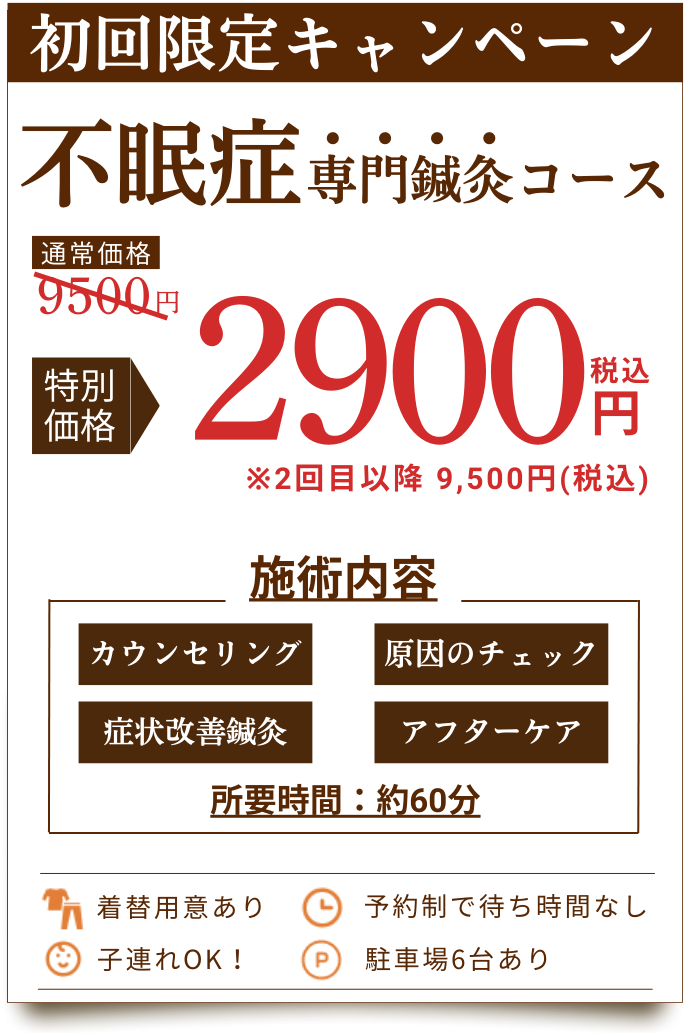 眠れないという悩みは生活の基盤が崩れるほど大きな悩みなのですぐに改善できて本当によかったです。