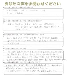 治療ももちろん痛みが消えるのを実感できますが、その後の家でのお灸をすすめてもらい、私自身も来院した時だけでなく、普段から体調を無理なく整える努力が出来るようになってきました。