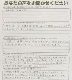 前回の治療後、2日ほどで痛みは無くなったとのことでした。